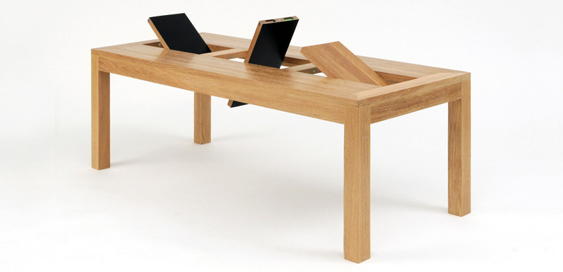 with the chalkboards built directly into the table, ‘writeable’ can be used simultaneously as surface and for message-writing