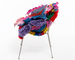 the chair is constructed from varying lengths of polypropylene tube that have been melted and pressed together