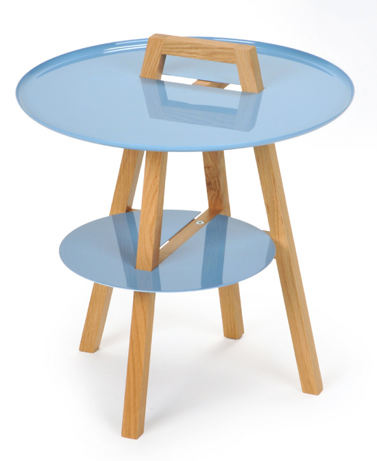 ‘spin table’ in various shades of gloss blue
