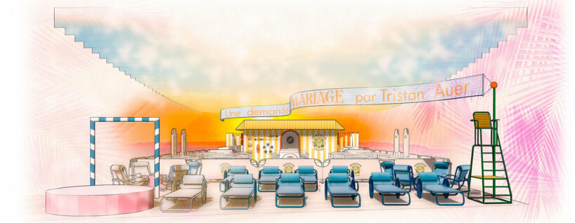 maison&objet’s 2017 designer of the year, tristan auer, has brought the beach to the 2022 spring edition of the design event. the architect has designed the mariage fréres pavilion, which has been installed in the center of hall 7. named the beach club, the temporary space pays homage to the art and joy of living by the sea.
