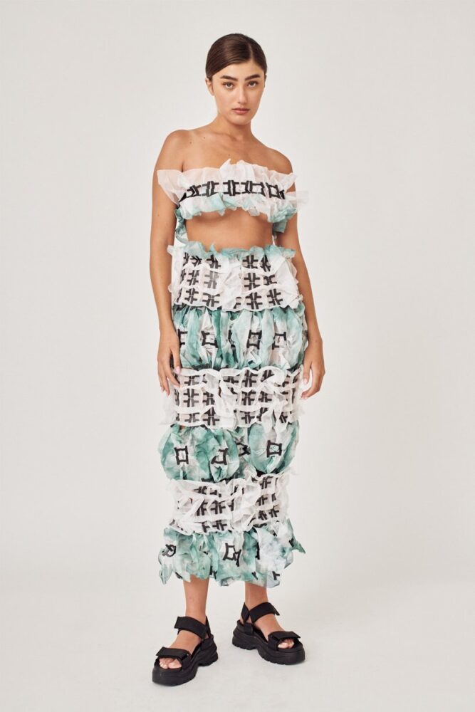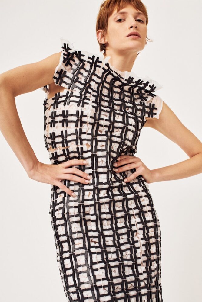 the design centers around a sculptural turntable topped with thirty-nine individual wooden tiles that flip and shift in real time as music plays.
