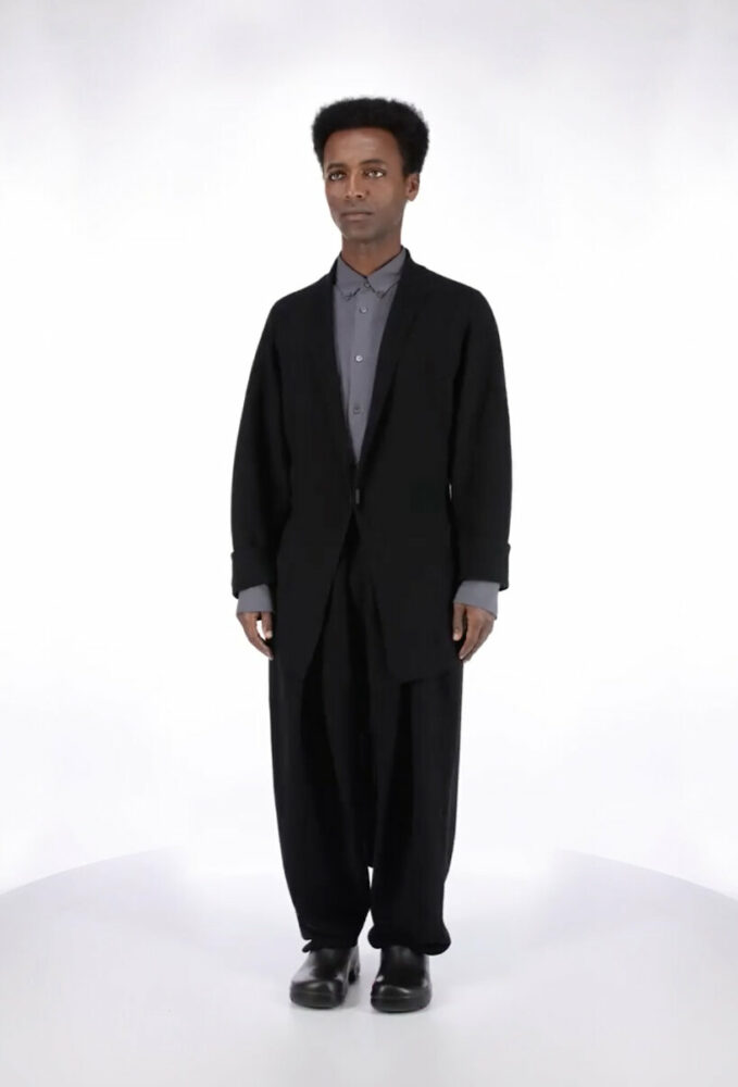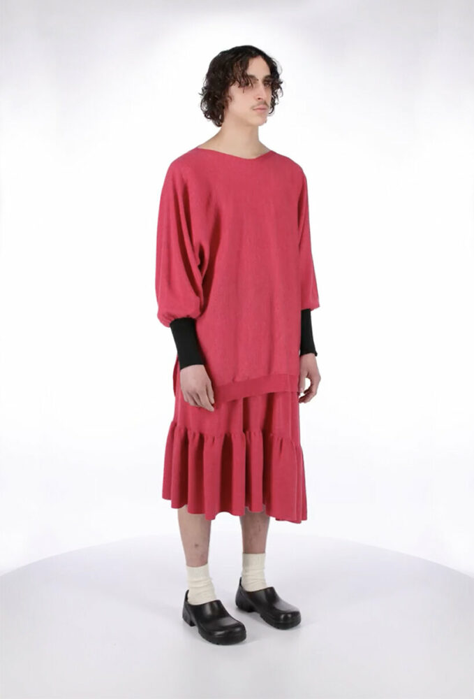 Each ‘Universo Cancellato’ piece (see more here) offers a soft and abundant fit by resting on, wrapping around, and adapting to the body. Meanwhile, elasticated cuffs and straps support and embrace the garment with more firmness. The key pieces from the knitwear collection are the jacket with kissed closure, inverted pleat trousers, and wide asymmetrical skirt.