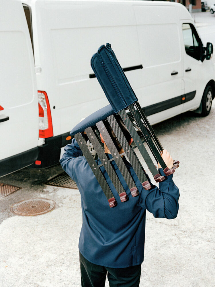 Shot by Leonardo Scotti and produced by Cabinet Studio, Meritalia is Back visualizes ‘the new beginning of a company which takes back it place in the world. In the end, a design brand is made by the pieces that form its catalogue. In the case of Meritalia, they were all stored in a warehouse in Brianza, and we had to actually move this archive to our facility in the Langhe, where we are based. So we decided to focus on this moving as a sign of a restart for the brand, and we photographed the pieces being actually unloaded from the truck in our headquarters. This is basically what precedes the production. It’s the first moment for us to say Meritalia is Back!’ Charley Vezza explains to designboom.