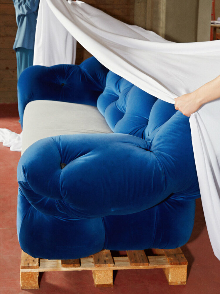 Following the campaign, the Group anticipates the upcoming relaunch of some of Meritalia’s most iconic pieces: Gaetano Pesce’s modular La Michetta sofa, Shadow armchair, and Nubola sofa. ‘Next year will be dedicated to pieces by Giulio Iacchetti, Mario Bellini, and some maybe lesser known – but equally beautiful – pieces by Pesce, plus a few additions by contemporary designers that can understand the philosophy behind the brand,’ the CEO adds.