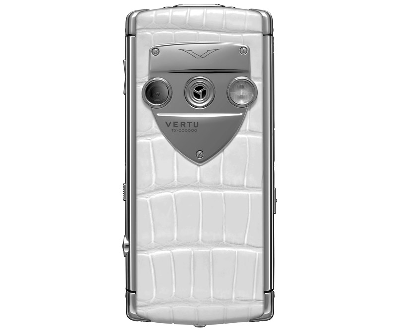 and black or white alligator with diamond, each handset is hand-assembled at the vertu headquarters in england.