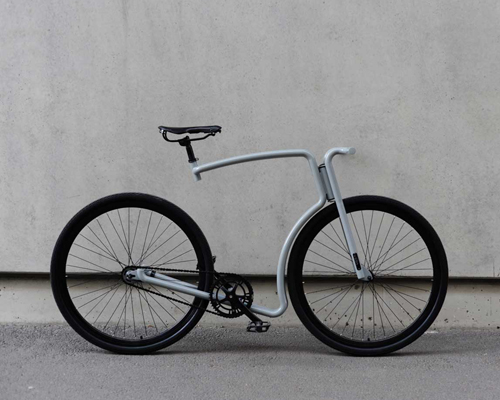 similar to the viks urban fixed gear commuter bike, the ‘anniveloversary’ edition by estonian engineer indrek narusk and owner of velonia bicycles, draws styling cues from cafe racer-style motorcycles and classic streamlined aesthetics. the new iteration is made entirely from stainless steel tubes, featuring cantilevered seating built with a robust metal structure. the overall construction is joined at the head tube and bottom bracket, with the fork and handle bar coming together as a single piece. crowns, dropouts, and welds are all also composed entirely of stainless steel tubes, which together, ensure a smooth ride over rugged terrain.