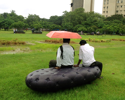 two city dwellers in mumbai test out a ‘water bench’