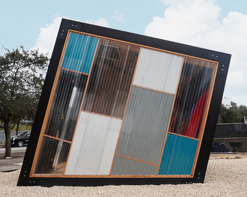 made from surf shack-like components — 2×12 beams, corrugated plastic, and standard plywood — the design embraces humble materials within a formal structural grid. external shelving allows occupants to collect and display various ephemera, such as rocks, beachwood, and shells. miami-based fabrication company deft union were responsible for constructing the shack.