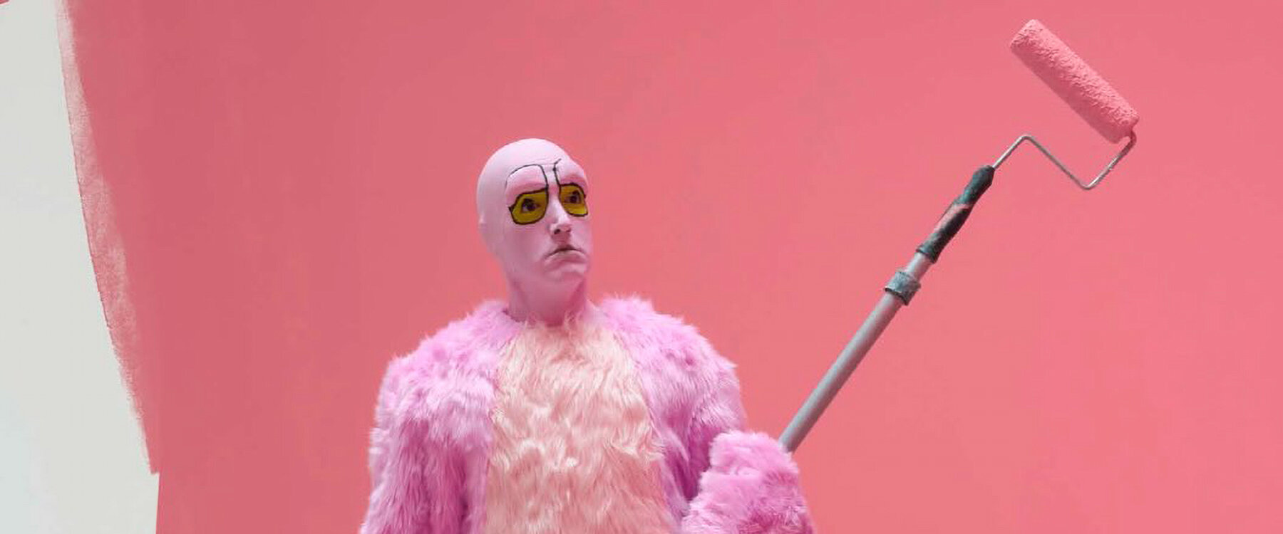 The exhibition comprises three chambers separated by thresholds of art historical reference. Da Corte himself appears throughout the installation in life-size sculptural form: as the Pink Panther recast as a house painter; as Popeye perched on a brick piano, quietly contemplating a pumpkin; and as a figure reclining in a reconstruction of Paul Thek’s legendary 1967 installation The Tomb.