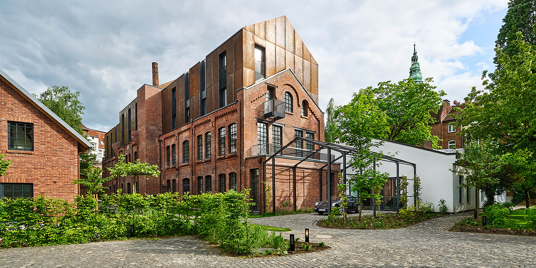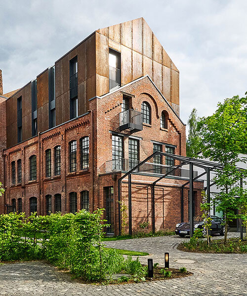 corten steel extends former laundry complex’s brick buildings in kassel