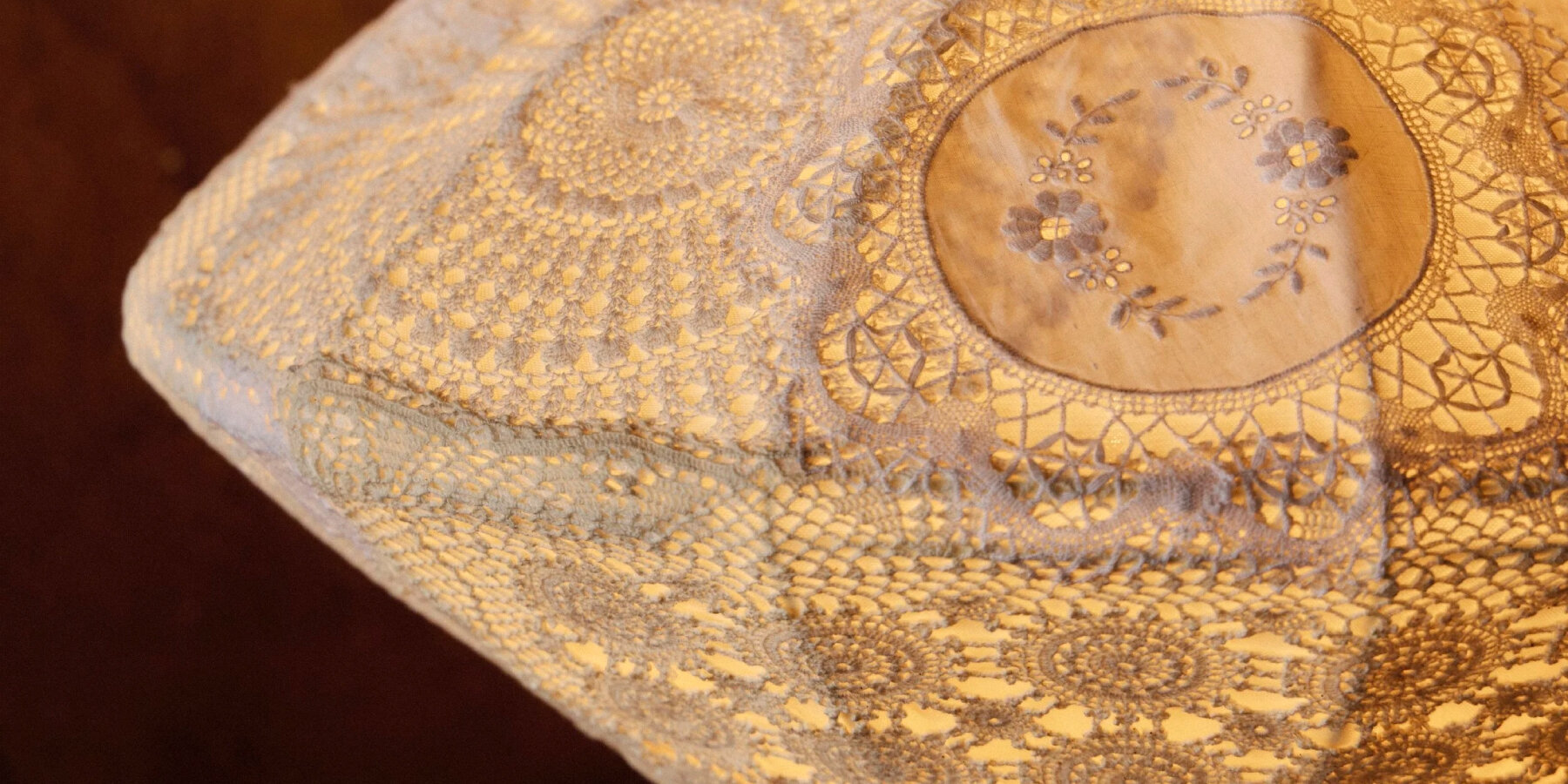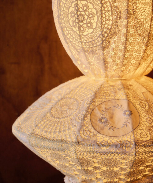light sculptures preserve ancestral designs through antique doilies and lace textile