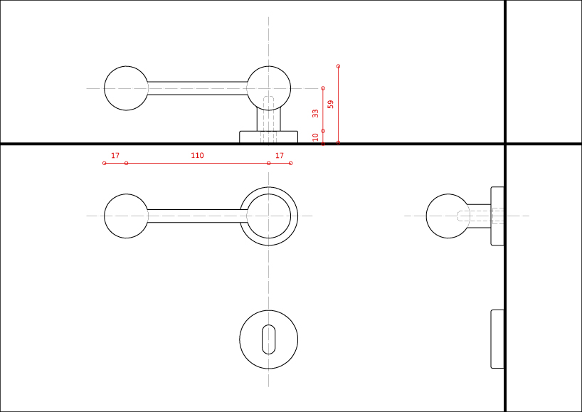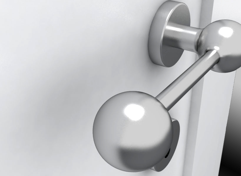 a severe geometry: 2 globes, 2 shafts, 2 round plates. an elementary object, so simple that it makes you think it has always been there. “2” handle echoes different imageries: the simple reliable mechanics of a gear shift lever, the tough look of a body piercing stud or the abstaction of molecular models.