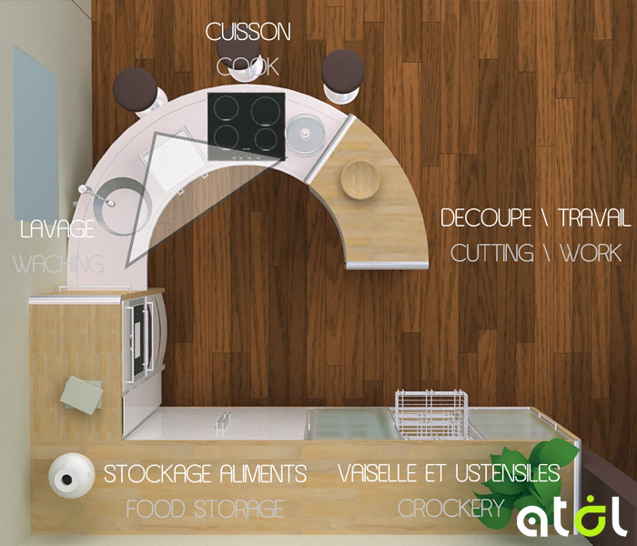 "Atol" try to give an answer to this problem taking into consideration the new social dimension and role of this space and offering to everyone the same pleasure and benefit in the cooking activity.