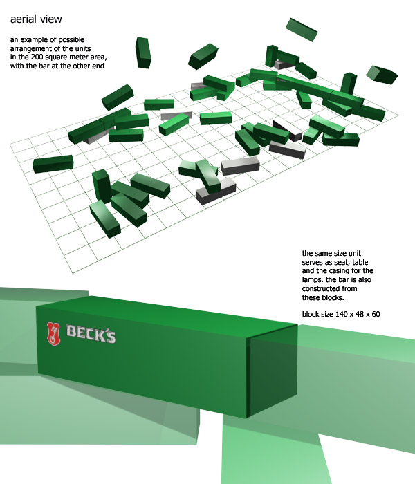 A system of freely arrangeable, multipurpose blocks. A setting of randomness that allows spontaneous occasions in a non-formal mood.