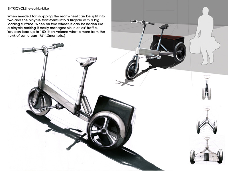 The concept behind the Biquattro is to stimulate some thoughts about alternatives to the car, now that in everyone's mind, it has become clear that our habits over the past century have contributed to exuberant levels of carbon dioxide emission and