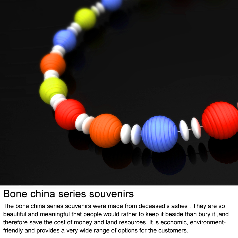 The bone china series souvenirs were made from deceased’s ashes . They are so beautiful and meaningful that people would rather to keep it beside than bury it ,and therefore save the cost of money and land resources.