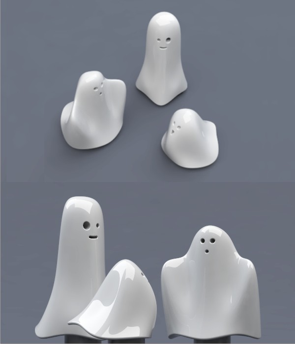 Booh is a set of Salt and Pepper shakers made of porcelain. The inspiration for this project was ghosts, funny and simple. Booh!