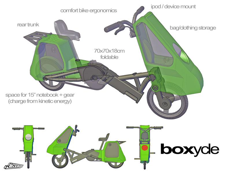 boxycle has all the benefits and convenience of folding bicycle for urban (& combined public) transport, but with some extra usability :