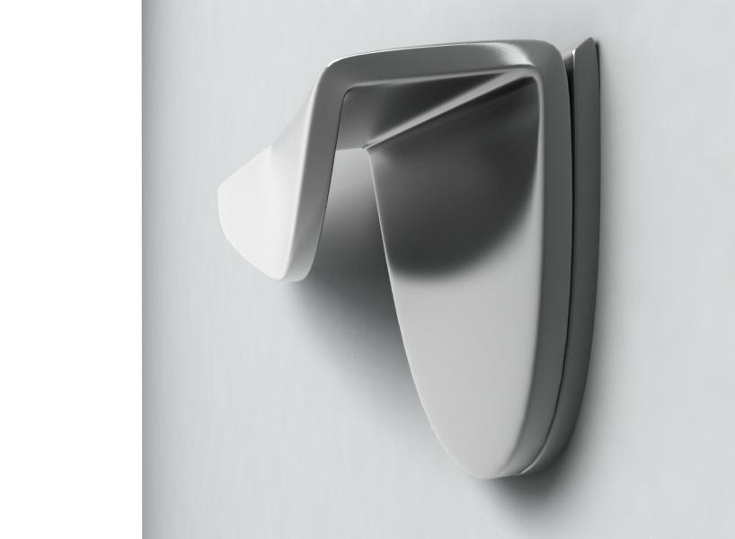 the use of the shiny reflective chrome makes the handle not only a part of the door, but also a part of the room by reflecting the interior colors.
