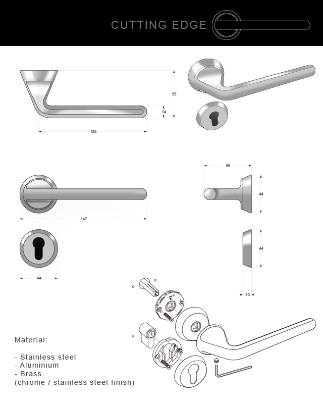 We wanted to design a very normal handle that people would love in their house; nothing fancy and overdone. The idea was to use the latest technologies on a very straightforward design . We tried to create a shape that you can almost only come up with the use of 3d modeling / CAD. For this we made a cone that forms into a handle. To get the final shape this very simple cone is cut with a box that has a radius on the corners. The result is a very graphical shape. The handle can be mirrored to get a left and right version, so one mould can be used.