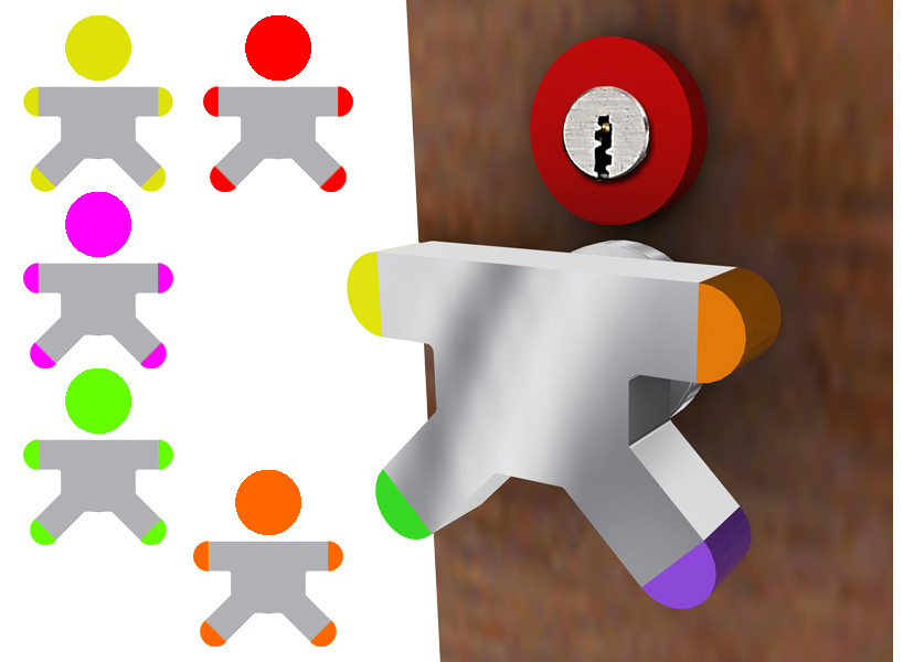 The handle is made of steel, it can be 100% of steel or lead details in steel, rubber or resin colors, is designed for interior doors and easy to use for children has four attachment points for ease of turning