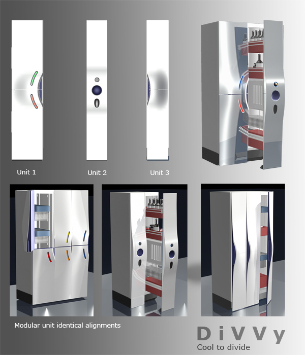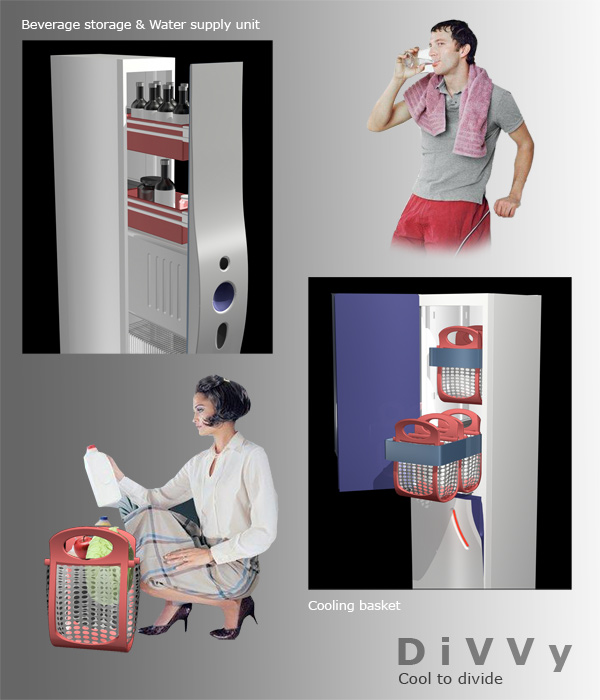 DiVVy is the future solution of refrigerators that divides, organizes and secures personal space in a refrigerator. DiVVy is designed for people who live with roommates and in places where people share a refrigerator, for example, in the dormitory, office.