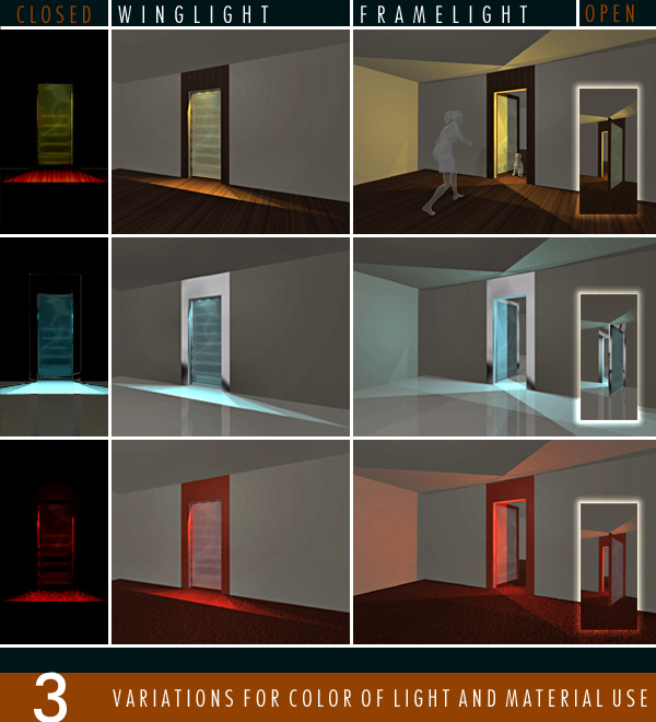 The other lighting system which is placed inside the frame is active once the door is opened while the wing-lights turn off.