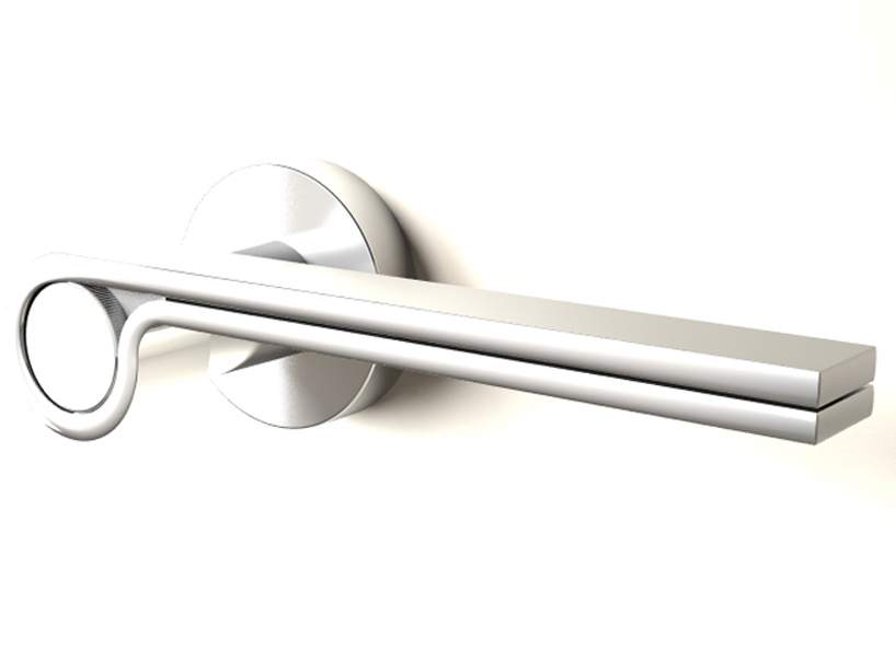 doulble line by sara passalacqua from italydesigner's own words:The double line door handle, has a metal graft with clean and linear shapes, in which rolls a metal stripe that makes the handle