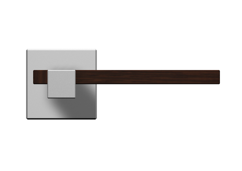 the combination of materials (aluminium/wood) emphasizes the connection between the rotary cylinder and the handle. the door handle is made of two composite parts, to allow different materials, finishes and color combinations.