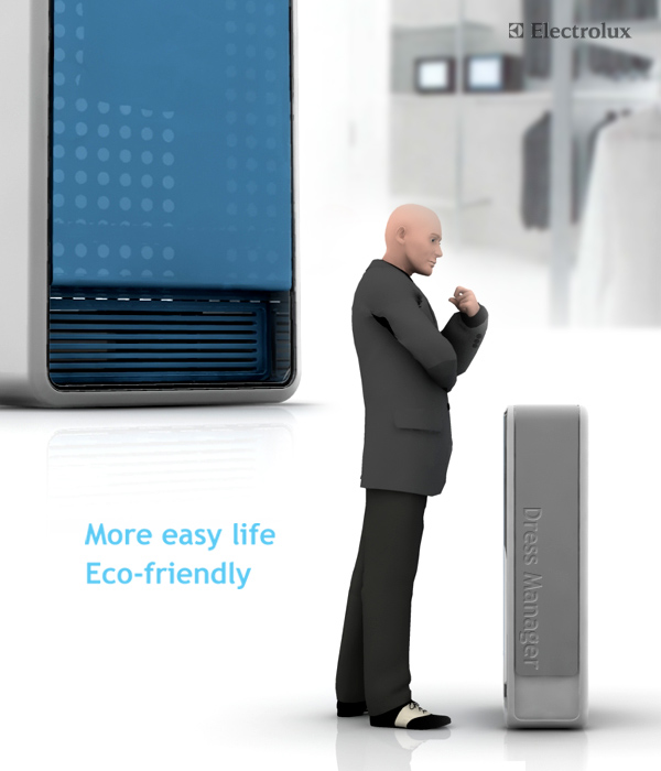 “Dress manager” targets people living alone; it diminishes traditionally complex process of laundry and saves both effort and time. It not only repots on the laundry-related information but also suggest daily coordination. The user can place the machine inside the room since water is not needed which adds on to the practicality and the interior beauty.