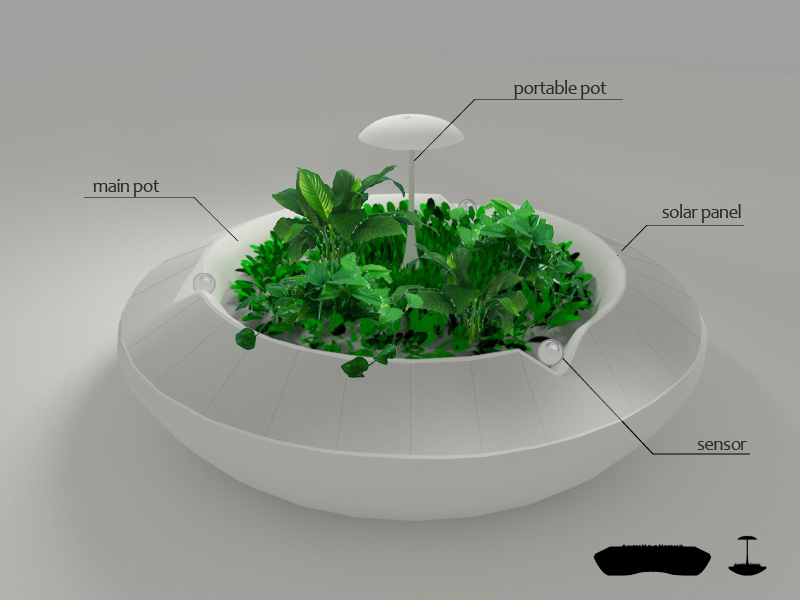 Eco-sharing pot is a vase of Intermediate artifacts for help to taking care of plant’s growth through reflective signal conditions between public garden and domestic space.