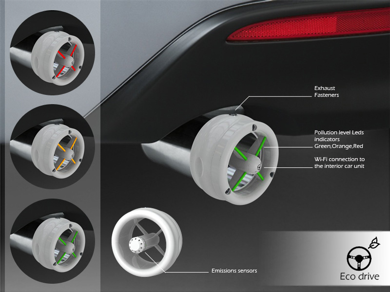 The car unit is responsible to collect this information captured by the exhaust unit and to deliver smiley sign which is indicating the driver the way he drives, if he gets a green smile smiley its mean he drives "ecological" the emission is on the low level.