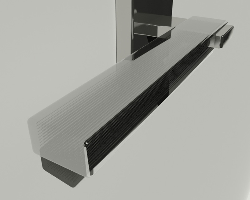 With style simple yet sophisticated, this handle combines two different materials from which it is formed. The compact, powerful and opaque base material combines with sensitivity to the translucent part of the handle. The translucent part contains some metal linear fibers along its lenght that give an extra interest to the observer. The compact part is possible to be constructed by brass while the opaque could be made of plexiglas enriched with metallic fibers.