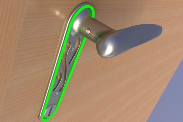 This door handle has the capacity to shine during the night. It has a Fluorescent insert in the handle that charges during the day with the interior light, make it easy to find during the night.