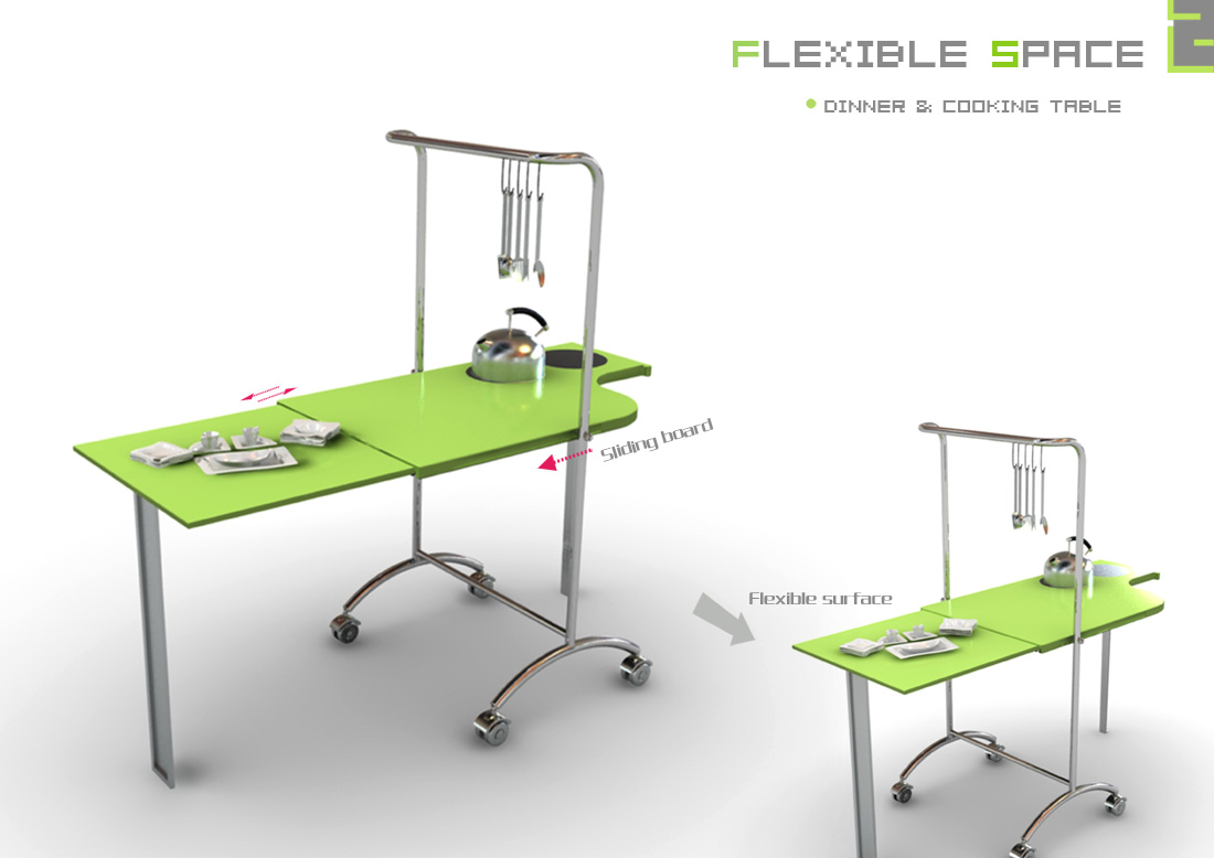 This product is designed for the small kitchen space.when use,rotate the board to horizon.Furthermore,you can expand the flexible surface to satisfy different operating needs. If it is not used,you could fold the table to form a verticle plane so as to save the kichen space