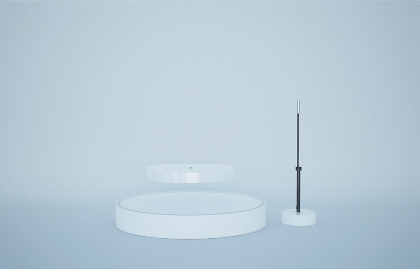 The design is essential and elegant. The motor and the turntable of the disc, that is suspended thanks to an electromagnetic field generated by the motor beneath, are made up of two cylindrical bodies. Another cylindrical body contains the electronic part of the project and an aluminium cylindrical arm goes vertically up to the turntable-high and goes on at right angles to the disc to read the sound that it plays. The final part of the arm, useful for reading of the disc, affects neither its stability nor the turntable one.