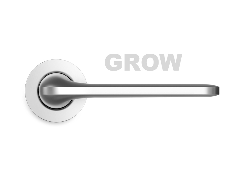 grow is manufactured out of brass and has a matt chrome finish. so the lights and the shadows accentuate the shape without reflecting the whole surroundings. the door handle is fully integrated in its environment and should not attract too much attention by itself. this is one reason why it is called grow - because it is grown up. grow doesn't need to be loud. the main goal of grow is to be ergonomic, pleasant, modest and timeless. the door, the handle, the room and everything around it should be seen as a composition.