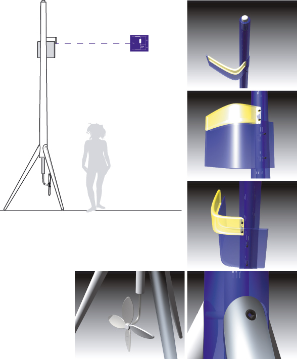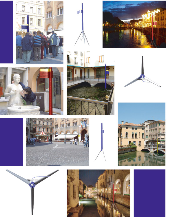 Guiding light is a project that consists in a new way to visit cities. Pick up a free card of the city you want to visit (you can choose your favourite tour), than follow the guide. At every step you will find a guiding aeolic or hydroeletric (it depends of the city...)light and a sign in wich you can read informations about the place you're in (a square, a bridge, a street...).