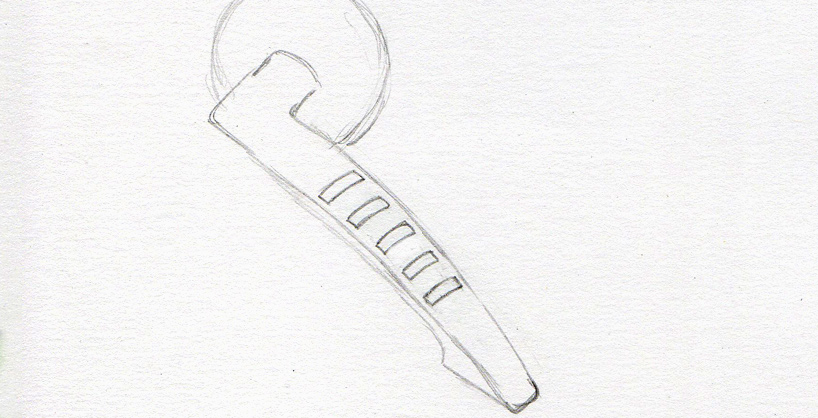 a light handle with triangular compaction on its tip and five right-angled holes on its ‘back’