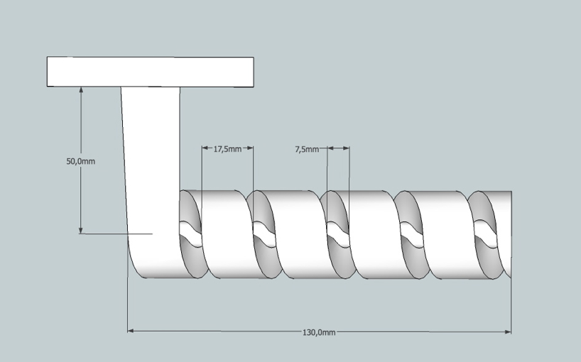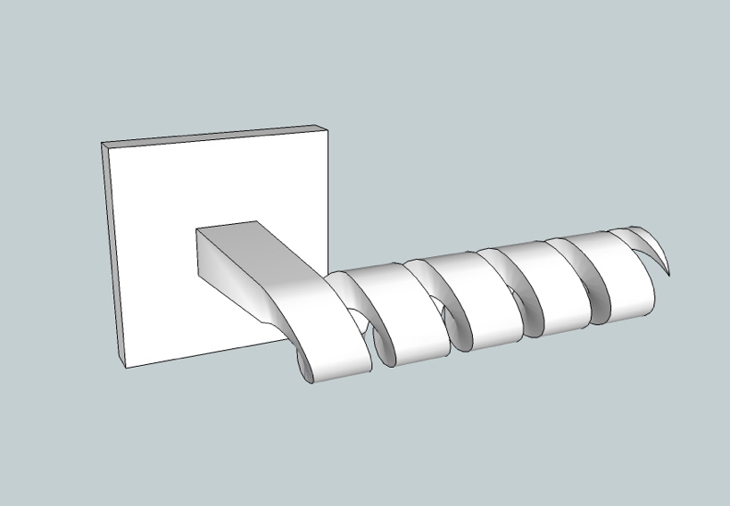 while drawing some sketches of different door handles i decided to create something new. something different to the usual basic geometrical forms. the look at a corkscrew served as inspiration for me. my handle is a little more massive than its model but it is expected to be still light. it was important for me that it didn't appear too massy. the edges are angular but the tip should be rounded to reduce the risk of injury.