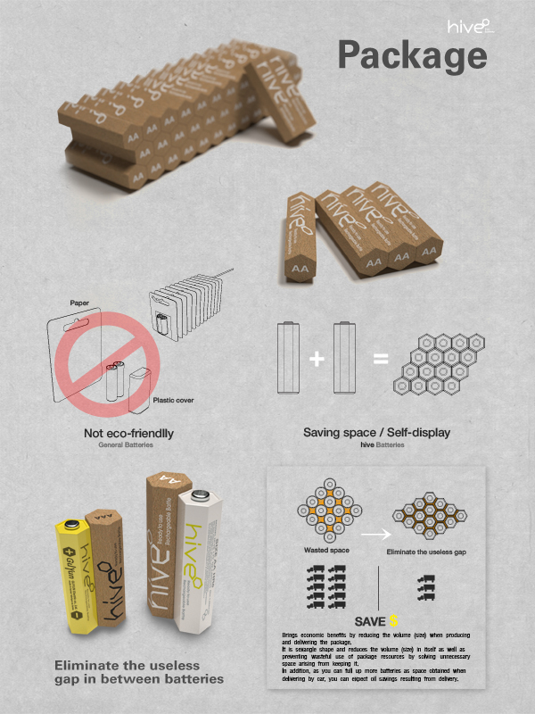 Hive battery is a design to make up for the weak points of rolling and falling down without any inconvenience of using the battery following its existing specification.