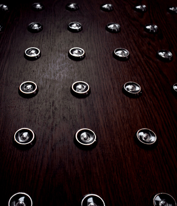 The multiplication of the spyhole scatters the centralized controlling view. It allows a whole famíly to participate in outlooking and intensifies as an ornament of security a secure feeling. Outlooking is turned into a play, in which the observed objects are distorted from multiple perspectives. A world formely unknown is visualized.