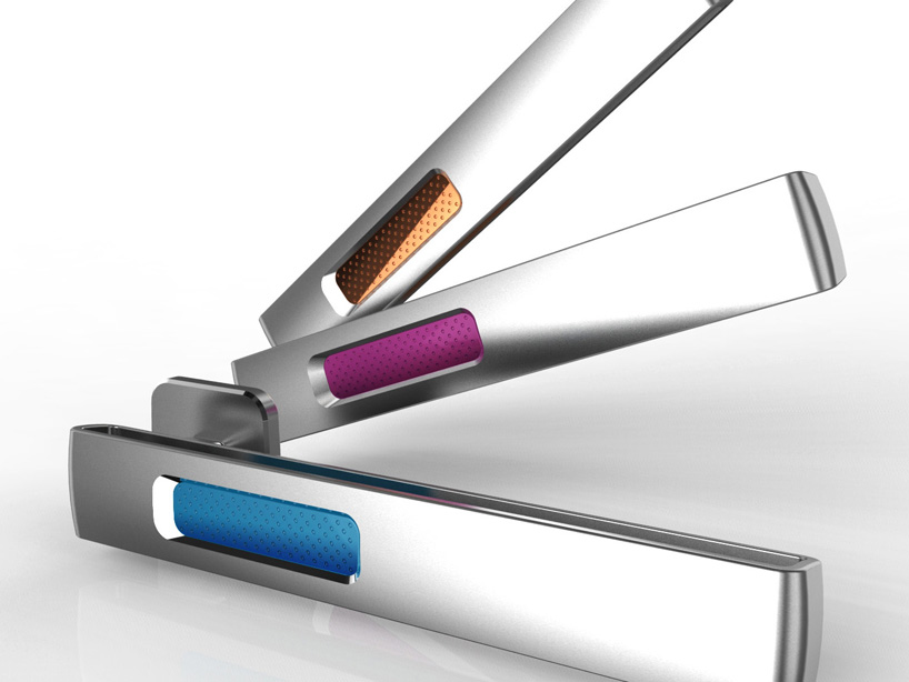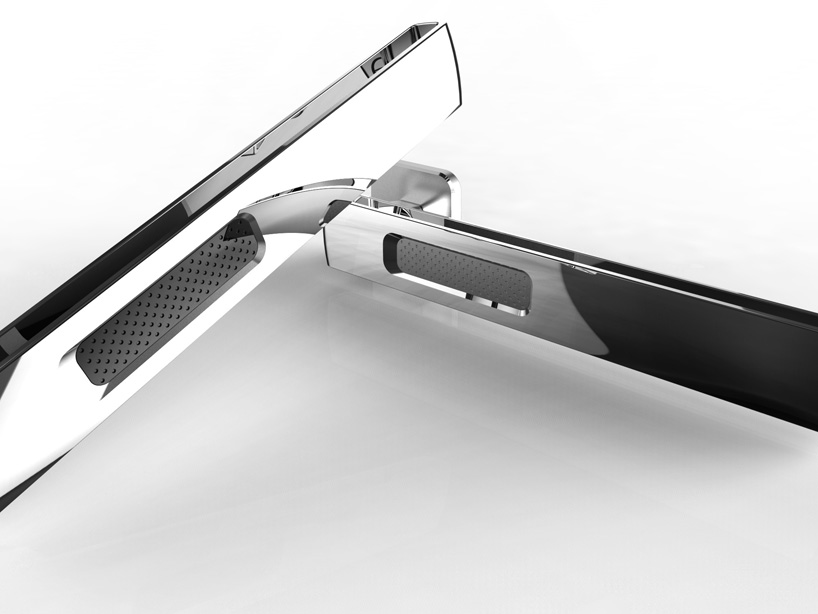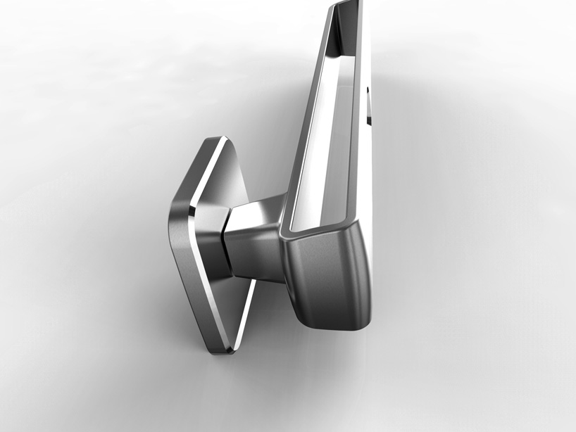 the concept of kolo is based on the inspiration of “through”. the clean shape is in order to integrate the environment properly. using pierced brass material is not only for creating a sci-fi style, but also trying to reduce the material using. with the polished glossy chamfer on the edge and matt finish would be showing the contrast of various finishes on the handle. the soft-touch rubber part is for indicating the holding pose and enhancing the holding experience.