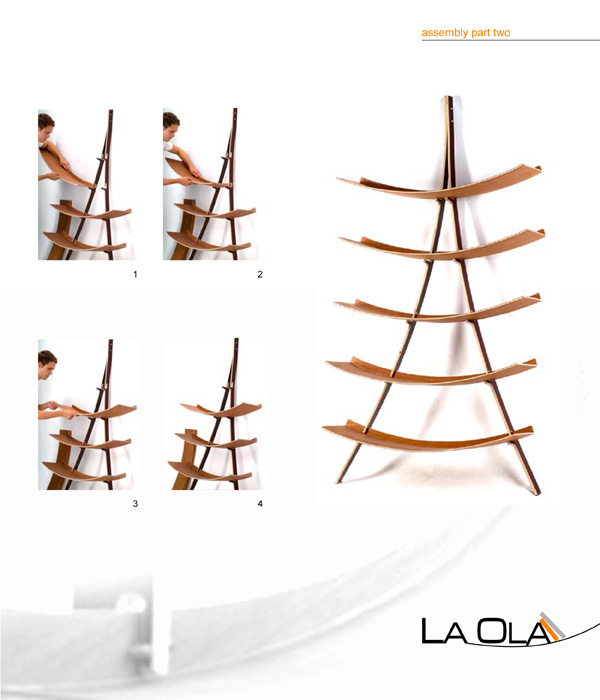 The bottom of the shelves are to retract the carrier profile from the side. "La Ola" can be dismantled and rebuilt easily and quickly.