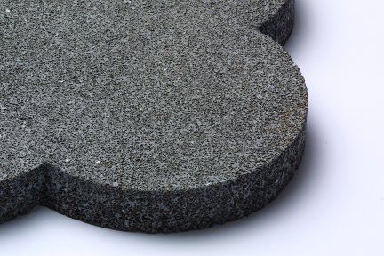 These tiles are made from real lava. They are not supposed to be massproduced but more for special projects like one square, one garden and so on. Lava is a fascinating material in all its variety. Often it is rough and impossible to cross but other times it forms flat surface sometimes so big that you start to relate to cathedral floors. I find it interesting to grasp this wild material and turn it into geometrical shapes.