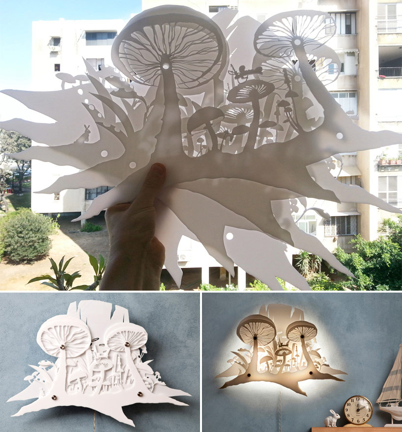 LAYERED is a family of storytelling light fixtures opening an illuminated window with an enchanted view into the domestic space. They add a sense of expansion and largeness to spaces; they can function as a piece of art on the wall as well as providing soft and pleasant illumination. The product also spreads over corners and climbs up ceilings.