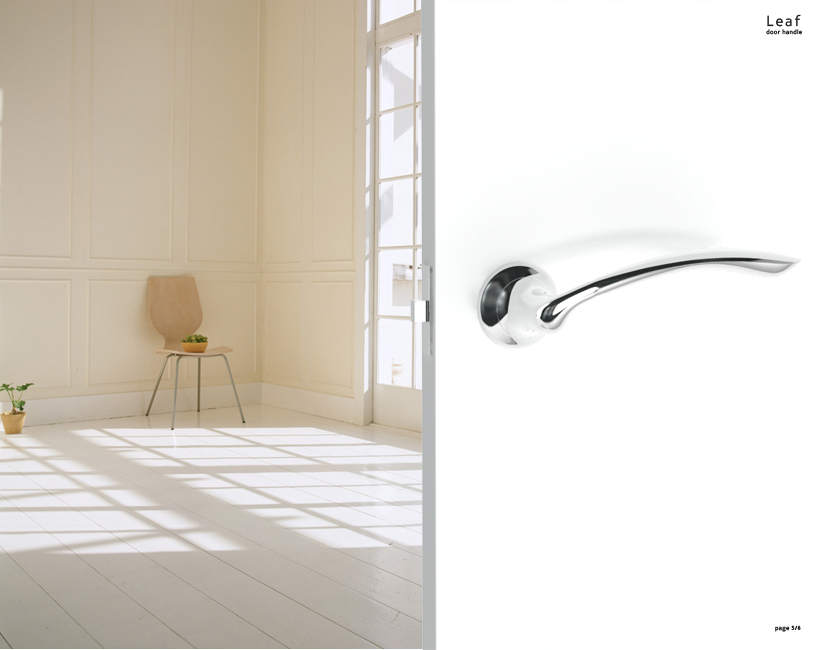 combined with the natural curvy lines on the sides to give a cool look. especially, it is a thing of beauty when looked at from the point of view of the users. also, for firmer and safer grips, the sharp edges on the figure have been eliminated. this door handle gives a visual impression that reminds a leaf sprouting out from the door, mitigating the feeling of isolation and separation and giving a sense of life.
