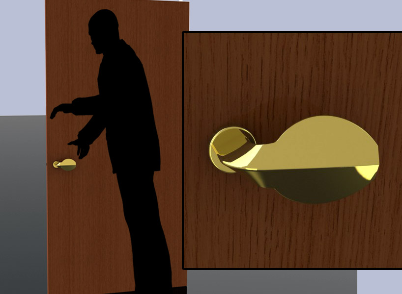 the broadleaf handle explores the possibility of grabbing the lever handle in a slightly different way. instead of holding it with a full power grip, its shape allows an almost tong-like grip, but without disturbing the mechanical advantage when turning the handle. it offers a broader area for the palm of the hand to press against. the handle resembles the shape of most broad leafs that grow on trees found in the tropical climates of the world. the shape comes from the simple concept of deconstructing a tree, taking the entire door and the handle to create an abstract imitation of trees, letting the door be like the trunk and the handle would become the leaf that grows from it.
