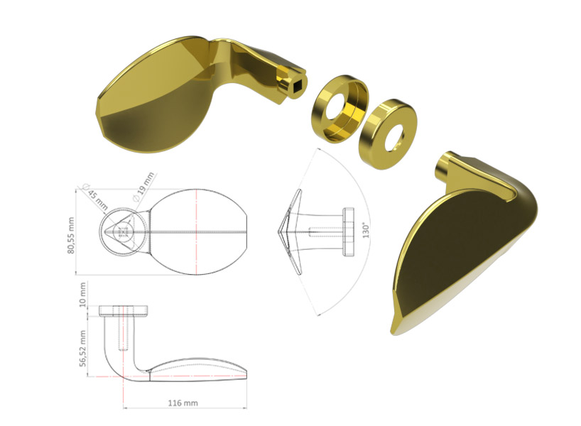 interior and exterior handle’s exploded view and detailed drawings.