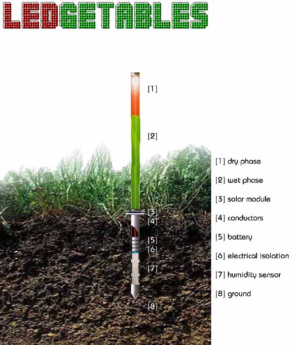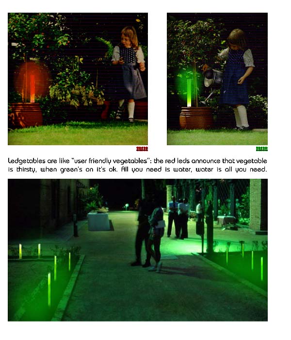 Ledgetables are like “user friendly vegetables”: the red leds announce that vegetable is thirsty, when green’s on it’s ok. All you need is water, water is all you need.